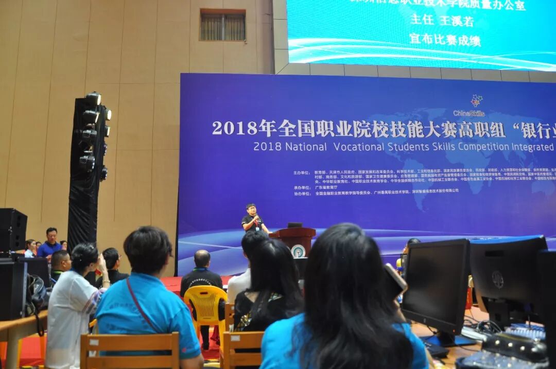 赛项裁判组组长深圳信息职业技术学院质量办王溪若主任宣布比赛成绩