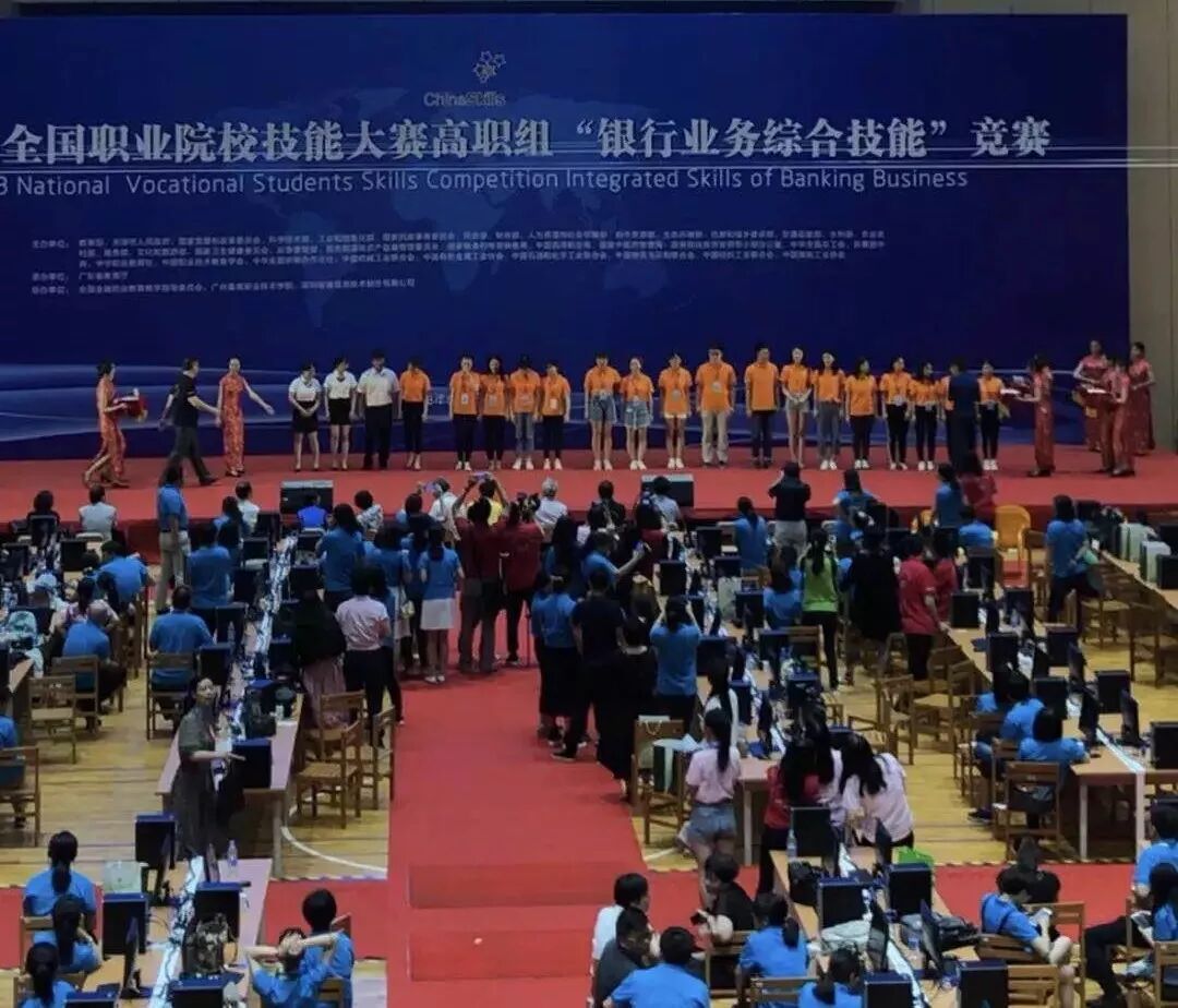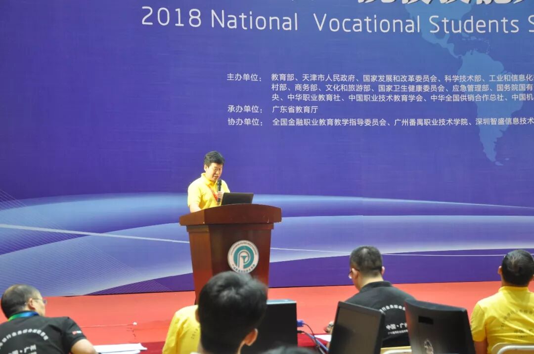 8点20分,国赛开幕式准时在赛场举行。开幕式由广州番禺职业技术学院刘佳环副校长主持,教育部职业技术教育中心研究所刘宝民副所长、浙江金融职业学院党委书记(全国职业教育教学指导委员会副主任委员、赛项执委会主任)周建松、广东省教育厅副巡视员胡振敏、广州市教育局谷忠鹏主任督学、赛项执委会副主任广州番禺职业技术学院何友义校长、赛项执委会副主任中国金融培训中心副主任(金融行指委秘书长)马玉兰、赛项专家组组长广东金融学院王醒男副校长、赛项仲裁组组长国家开放大学吴国祥教授、赛项裁判组组长深圳信息职业技术学院质量办王溪若主任、赛项监督组组长安徽省休宁县教育局中华职教社秘书长项雪华、赛项执委会委员深圳智盛信息技术股份有限公司董事长彭家源先生、广东分赛区执委会广东省教育厅职业教育与终身教育处张副处长以及广东省教育厅赛执委的相关领导参加了开幕式。