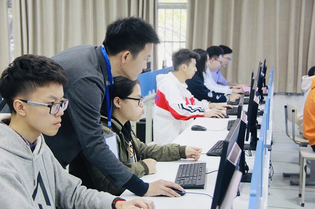 随着时间的流逝,现场的氛围达到了最高峰,赛场上只剩下敲击键盘的声音,选手们全身心的投入到比赛当中。