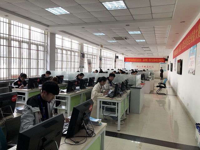 2019年安徽省职业院校技能大赛(高职组)“银行业务综合技能”竞赛在安徽财贸职业学院实训楼举办,本次银行竞赛参赛人数再创新高,共有来自全省24所高职院校,41支代表队,164名选手参加赛。