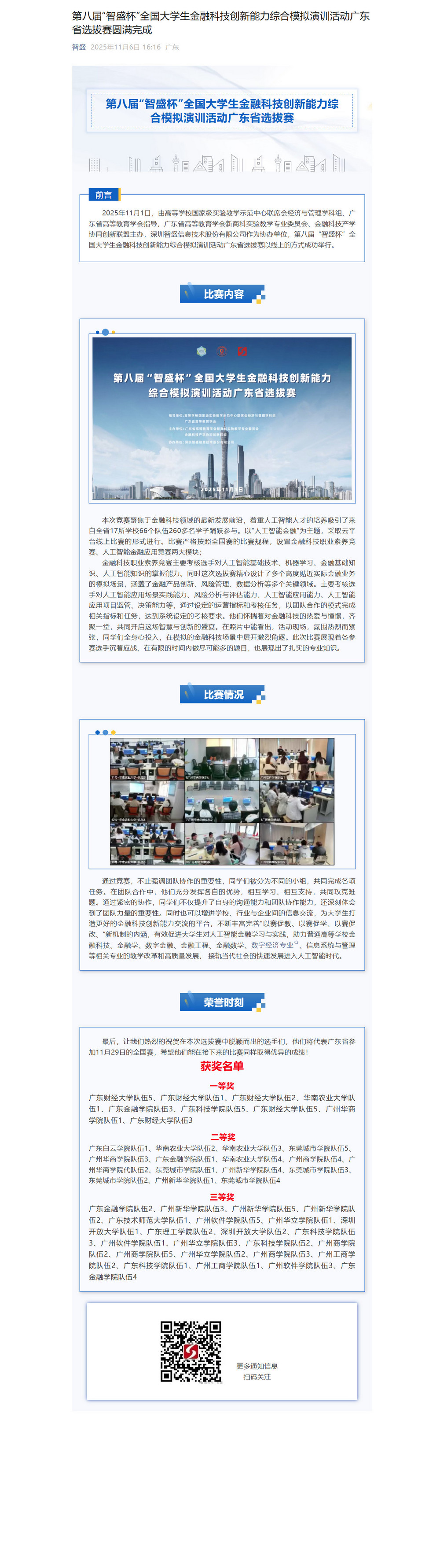 第八届“智盛杯”全国大学生金融科技创新能力综合模拟演训活动广东省选拔赛圆满完成